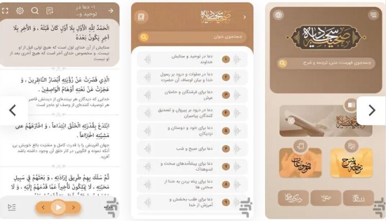 بخشهای مختلف نرم افزار صحیفه سجادیه عبارتند از: